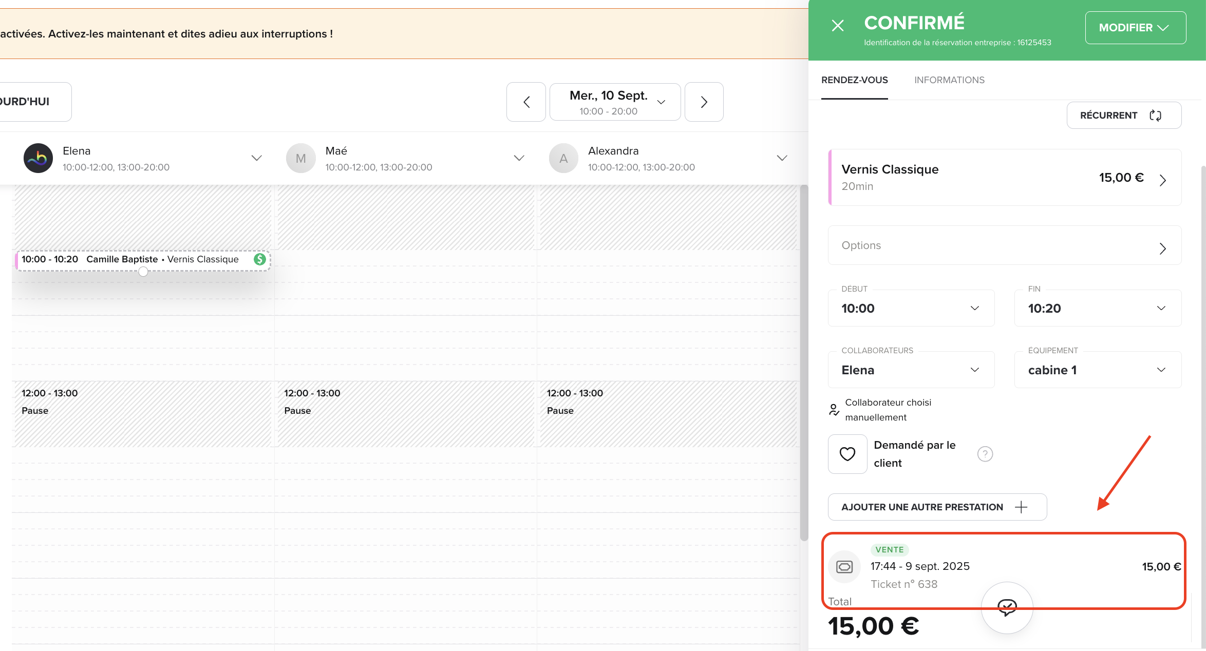 - Allez sur l'agenda ou dans la caisse et sélectionnez le rendez vous/ticket à rembourser :