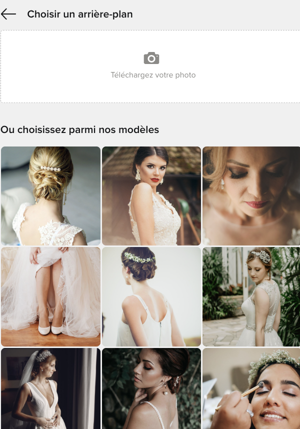 - Choisir un arrière plan : téléchargez votre propre photo ou sélectionnez un design dans la banque d'images associées.